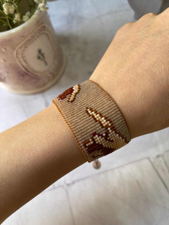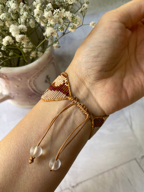 ✅این دستبند جذاب با منجوق با کیفیت ژاپنی میوکی بافته شده ✅کل کار بافته شده با دست و عشق فراوان هست ✅تمامی ایتم ها به سلیقه و سایز شما قابل تغییر است ✅اکسسوری اضافه شده از جنس استیل ضداب و ضدحساسیت هست ✅طول دستبند حدود ۱۳-۱۴ سانت و و بند سایزر دارد
