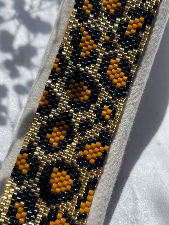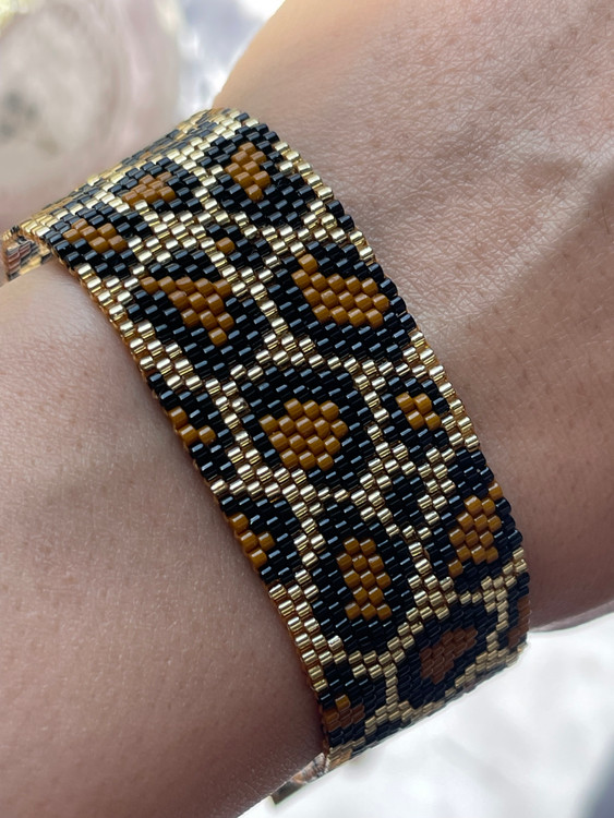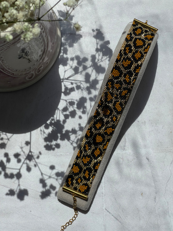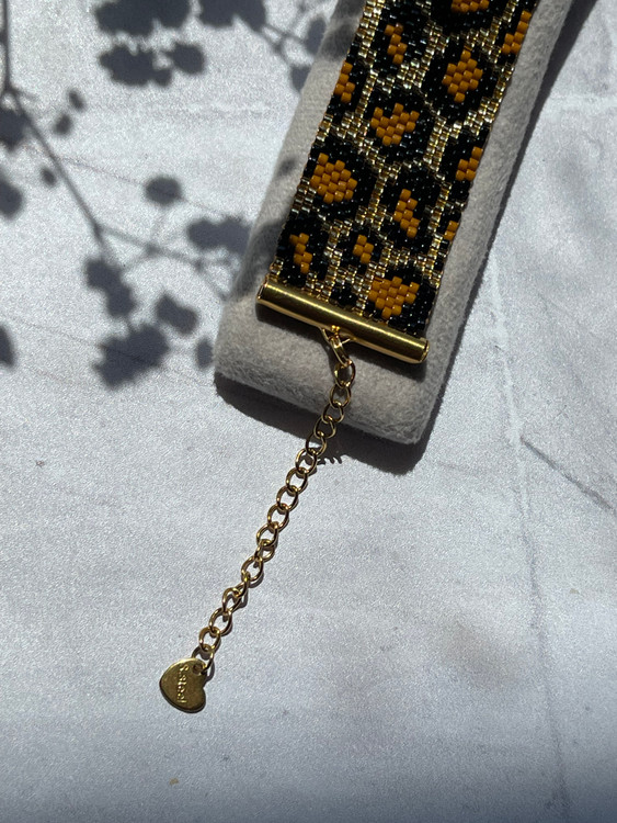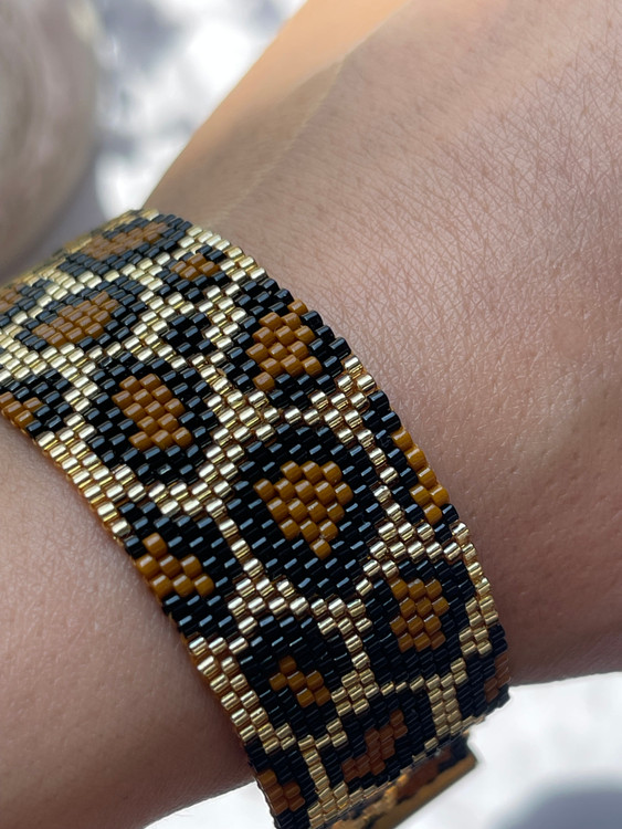 ❌این دستبند با منجوق طلایی شیشه ای بافته شده