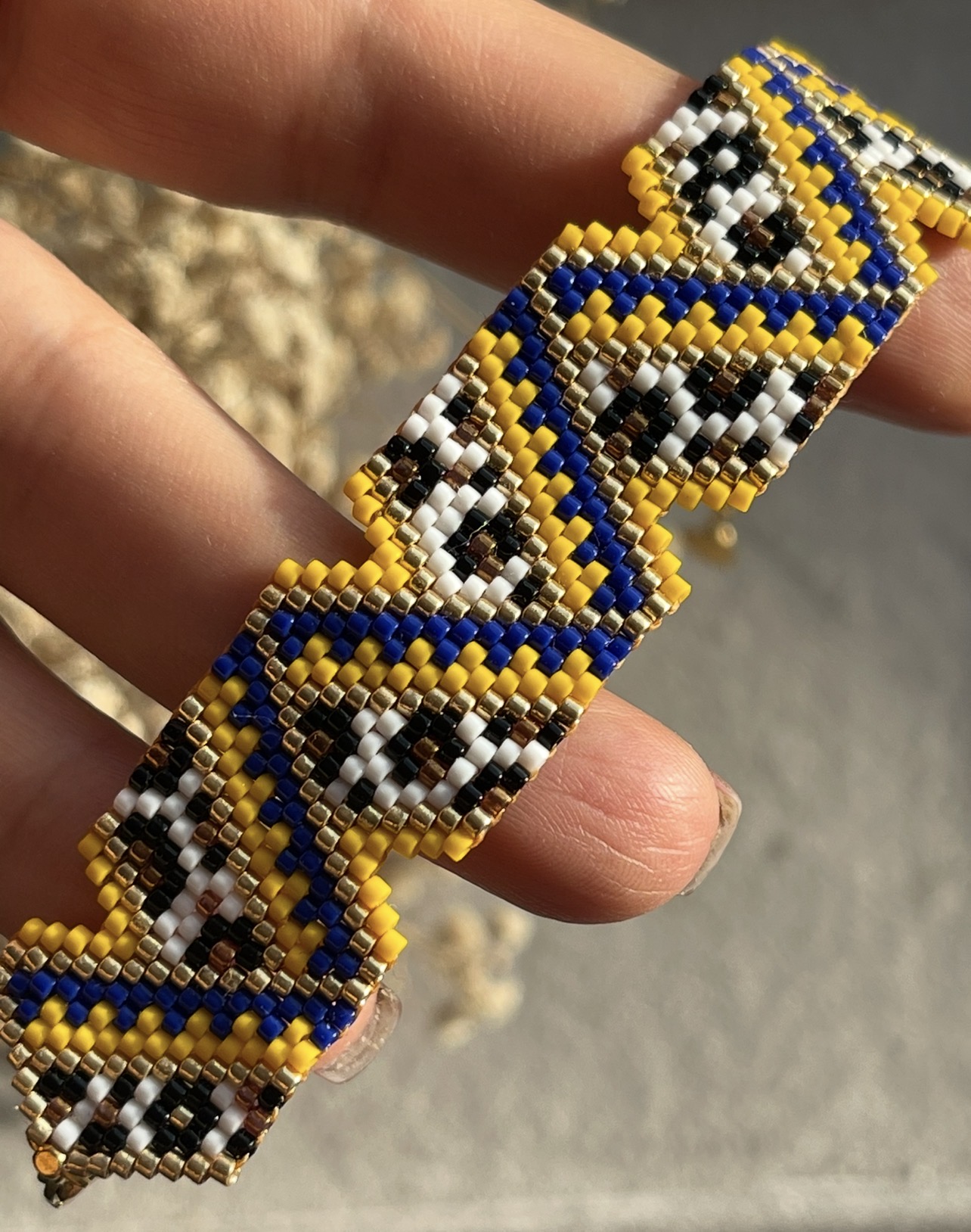 ✅این دستبند جذاب با منجوق با کیفیت ژاپنی میوکی بافته شده ✅کل کار بافته شده با دست و عشق فراوان هست ✅تمامی ایتم ها به سلیقه و سایز شما قابل تغییر است ✅اکسسوری اضافه شده از جنس استیل ضداب و ضدحساسیت هست ✅طول دستبند حدود ۱۳-۱۴ سانت و و زنجیر سایزر دارد