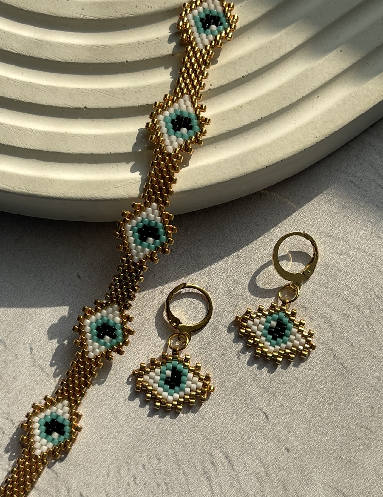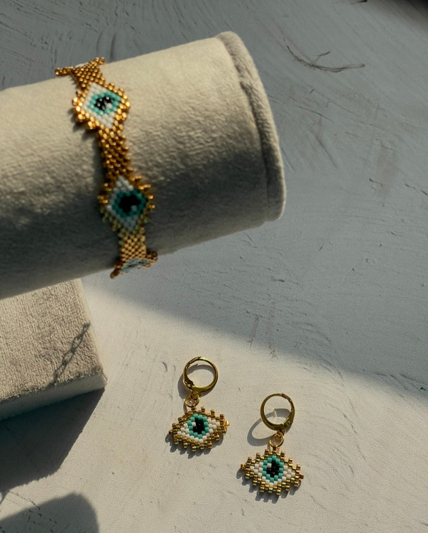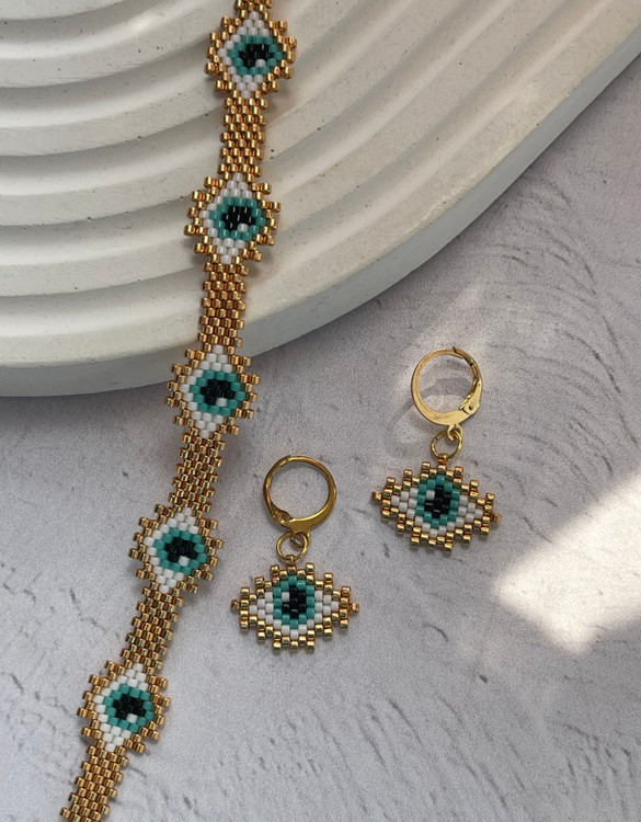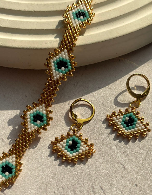 ✅این نیم ست جذاب با منجوق با کیفیت ژاپنی میوکی بافته شده ✅کل کار بافته شده با دست و عشق فراوان هست ✅تمامی ایتم ها به سلیقه و سایز شما قابل تغییر است ✅اکسسوری اضافه شده از جنس استیل ضداب و ضدحساسیت هست ✅طول دستبند حدود ۱۳-۱۴ سانت و و زنجیر سایزر دارد