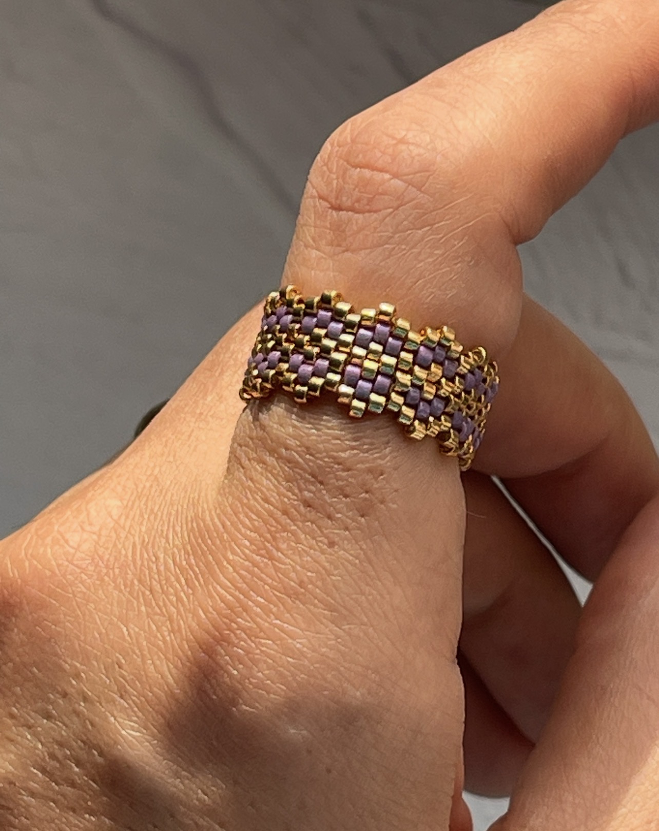 ✅این انگشتر جذاب با منجوق با کیفیت ژاپنی میوکی بافته شده ✅کل کار بافته شده با دست و عشق فراوان هست ✅تمامی ایتم ها به سلیقه و سایز شما قابل تغییر است ✅اکسسوری اضافه شده از جنس استیل ضداب و ضدحساسیت هست ✅قطر انگشتر حدود ۶-۶/۵ هست