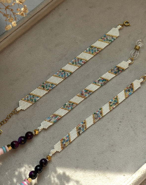 ✅این بند عینکهای جذاب با منجوق با کیفیت ژاپنی میوکی بافته شده ✅کل کار بافته شده با دست و عشق فراوان هست ✅تمامی ایتم ها به سلیقه و سایز شما قابل تغییر است