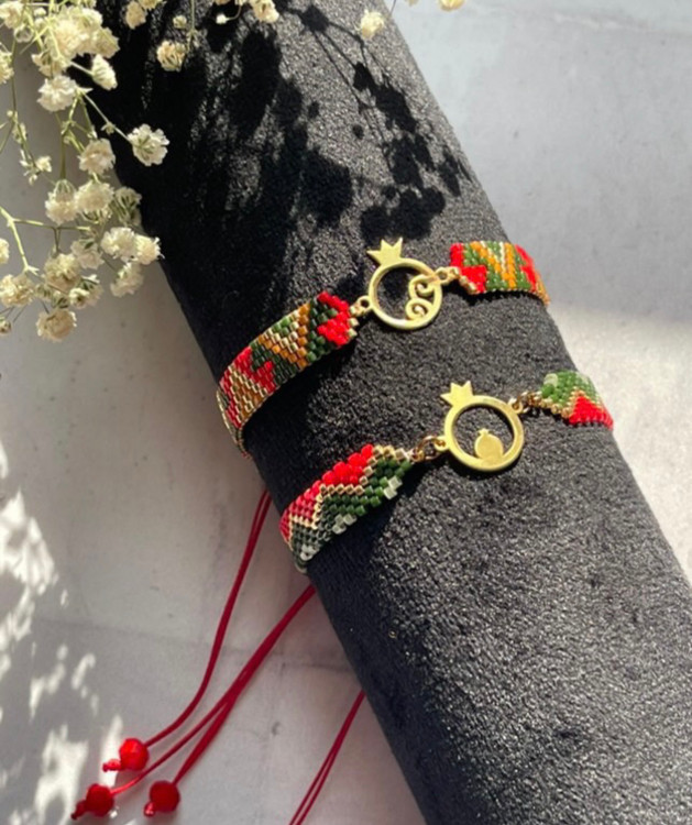 پلاک انار نقره با روکش طلا است و با ارزش و دستبند پایینی فقط موجود است