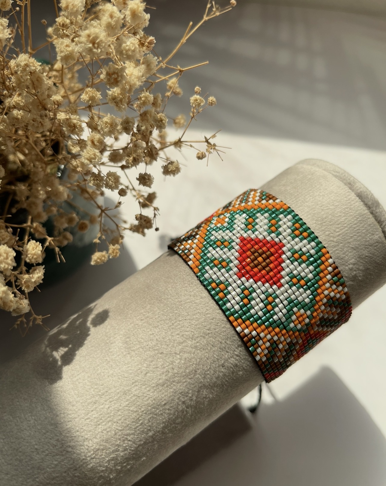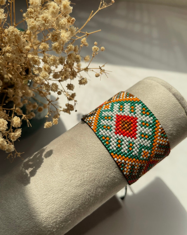 ✅این دستبند جذاب با منجوق با کیفیت ژاپنی میوکی بافته شده ✅کل کار بافته شده با دست و عشق فراوان هست ✅تمامی ایتم ها به سلیقه و سایز شما قابل تغییر است ✅اکسسوری اضافه شده از جنس استیل ضداب و ضدحساسیت هست ✅طول دستبند حدود ۱۳-۱۴ سانت و بند کشویی دارد