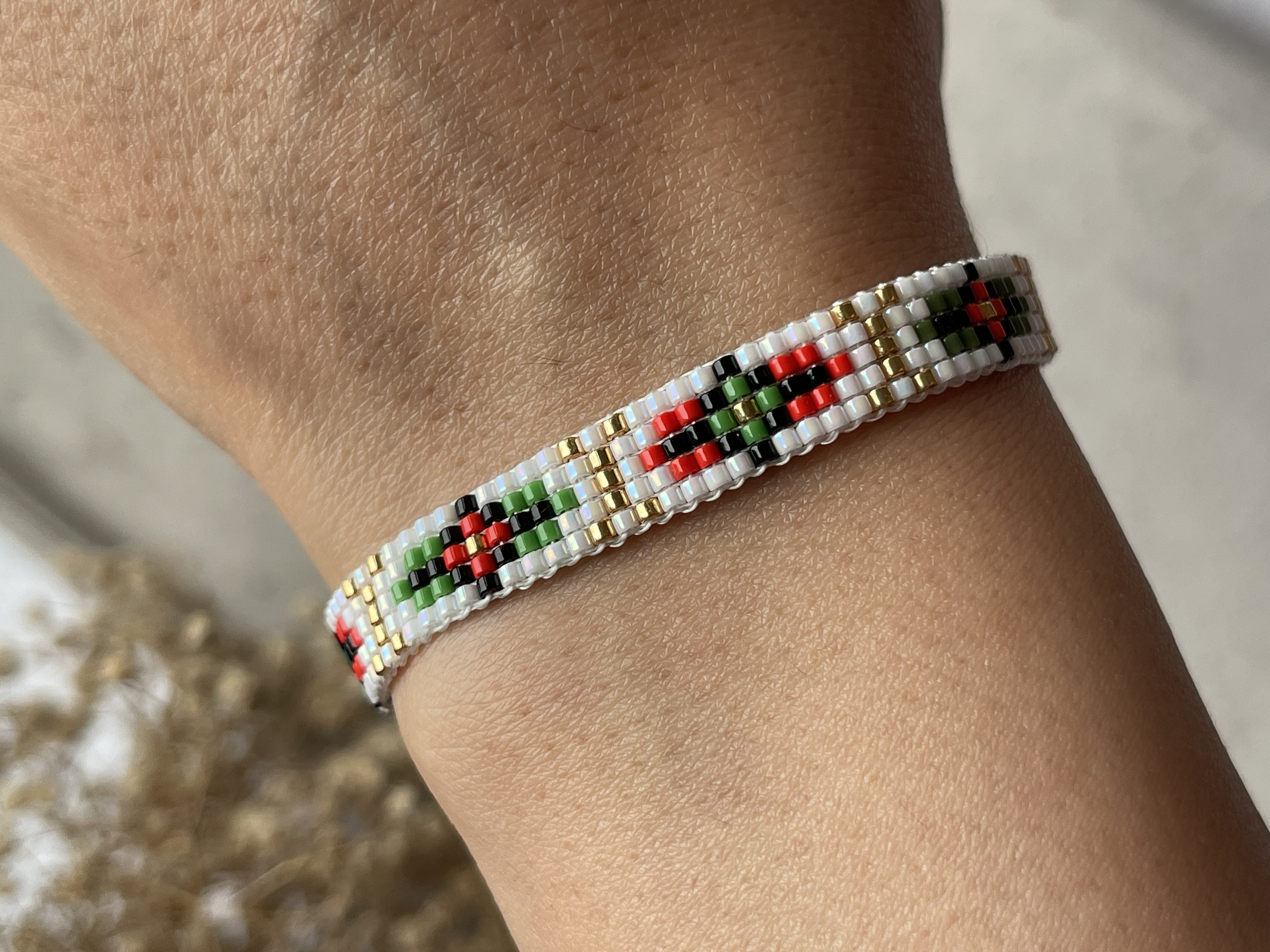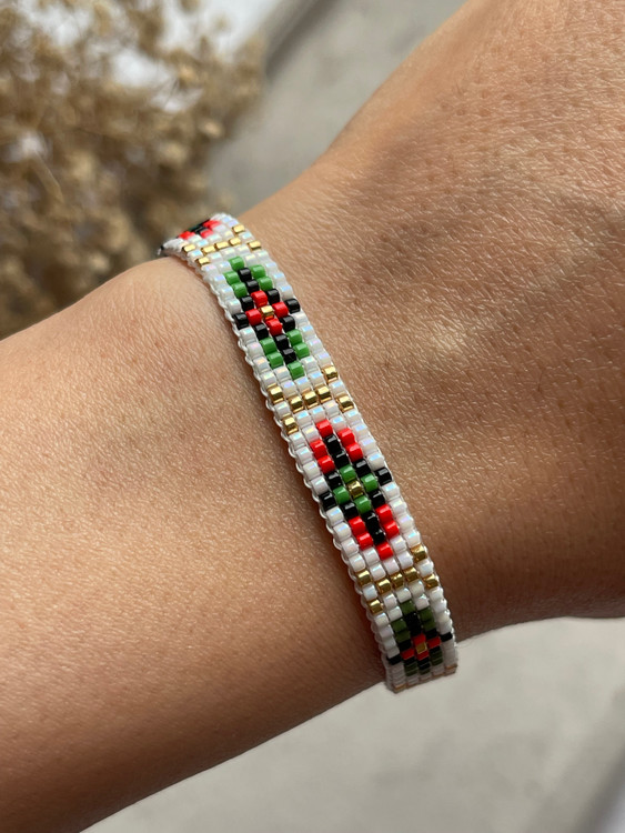 ✅این دستبند جذاب با منجوق با کیفیت ژاپنی میوکی بافته شده ✅کل کار بافته شده با دست و عشق فراوان هست ✅تمامی ایتم ها به سلیقه و سایز شما قابل تغییر است ✅اکسسوری اضافه شده از جنس استیل ضداب و ضدحساسیت هست ✅طول دستبند حدود ۱۳-۱۴ سانت و و بند کشویی دارد