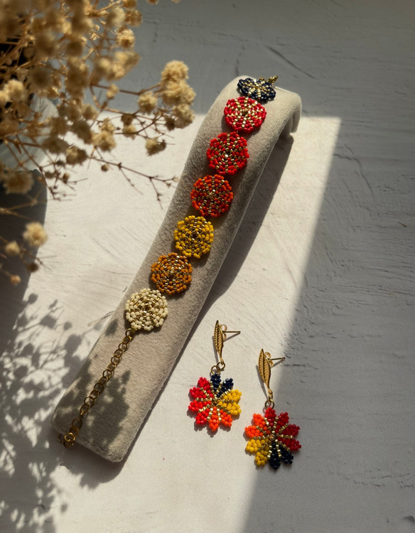 ✅این نیم ست جذاب با منجوق با کیفیت ژاپنی میوکی بافته شده ✅کل کار بافته شده با دست و عشق فراوان هست ✅تمامی ایتم ها به سلیقه و سایز شما قابل تغییر است ✅اکسسوری اضافه شده از جنس استیل ضداب و ضدحساسیت هست ✅طول دستبند حدود ۱۳-۱۴ سانت و و زنجیر سایزر دارد
