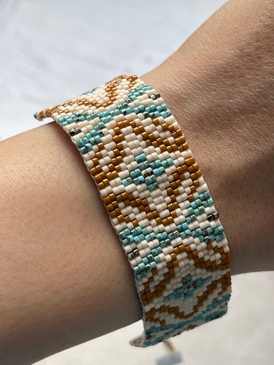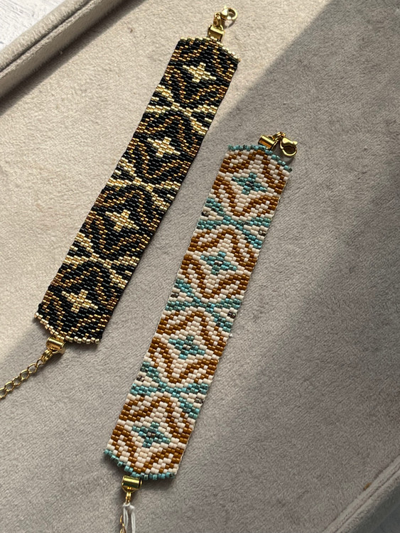 ✅این دستبند جذاب با منجوق با کیفیت ژاپنی میوکی بافته شده ✅کل کار بافته شده با دست و عشق فراوان هست ✅تمامی ایتم ها به سلیقه و سایز شما قابل تغییر است ✅اکسسوری اضافه شده از جنس استیل ضداب و ضدحساسیت هست ✅طول دستبند حدود ۱۳-۱۴ سانت و و زنجیر سایزر دارد