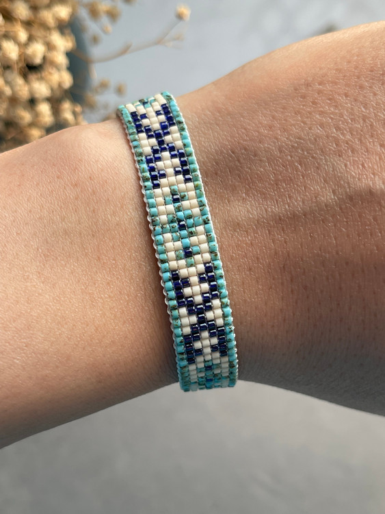 ✅این دستبند جذاب با منجوق با کیفیت ژاپنی میوکی بافته شده ✅کل کار بافته شده با دست و عشق فراوان هست ✅تمامی ایتم ها به سلیقه و سایز شما قابل تغییر است ✅اکسسوری اضافه شده از جنس استیل ضداب و ضدحساسیت هست ✅طول دستبند حدود ۱۳-۱۴ سانت و و بند کشویی سایزر دارد