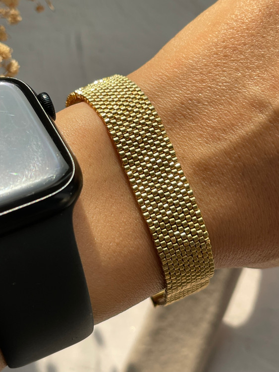✅این دستبند جذاب با منجوق با کیفیت ژاپنی میوکی بافته شده ✅کل کار بافته شده با دست و عشق فراوان هست ✅تمامی ایتم ها به سلیقه و سایز شما قابل تغییر است ✅اکسسوری اضافه شده از جنس استیل ضداب و ضدحساسیت هست ✅طول دستبند حدود ۱۳-۱۴ سانت و و زنجیر سایزر دارد