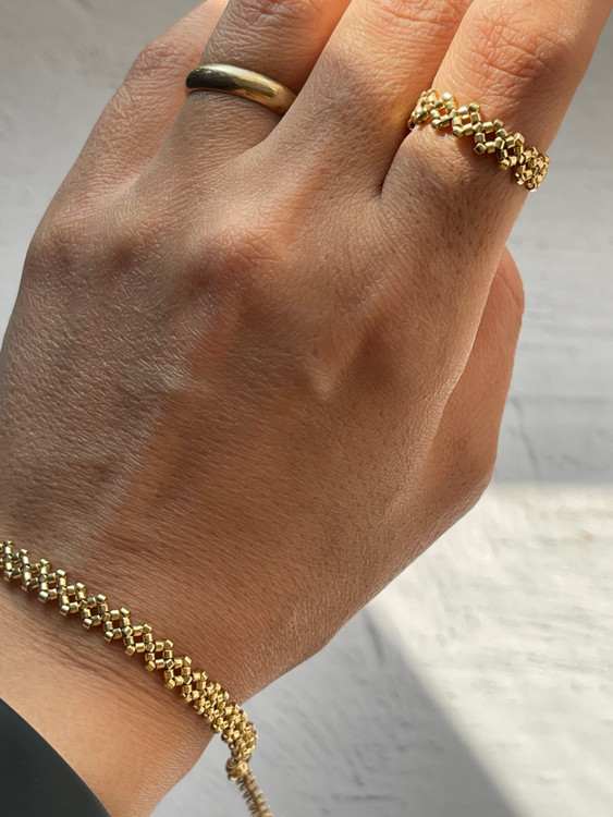 ✅این دستبند جذاب با منجوق با کیفیت ژاپنی میوکی بافته شده ✅کل کار بافته شده با دست و عشق فراوان هست ✅تمامی ایتم ها به سلیقه و سایز شما قابل تغییر است ✅اکسسوری اضافه شده از جنس استیل ضداب و ضدحساسیت هست ✅طول دستبند حدود ۱۳-۱۴ سانت و و زنجیر سایزر دارد
